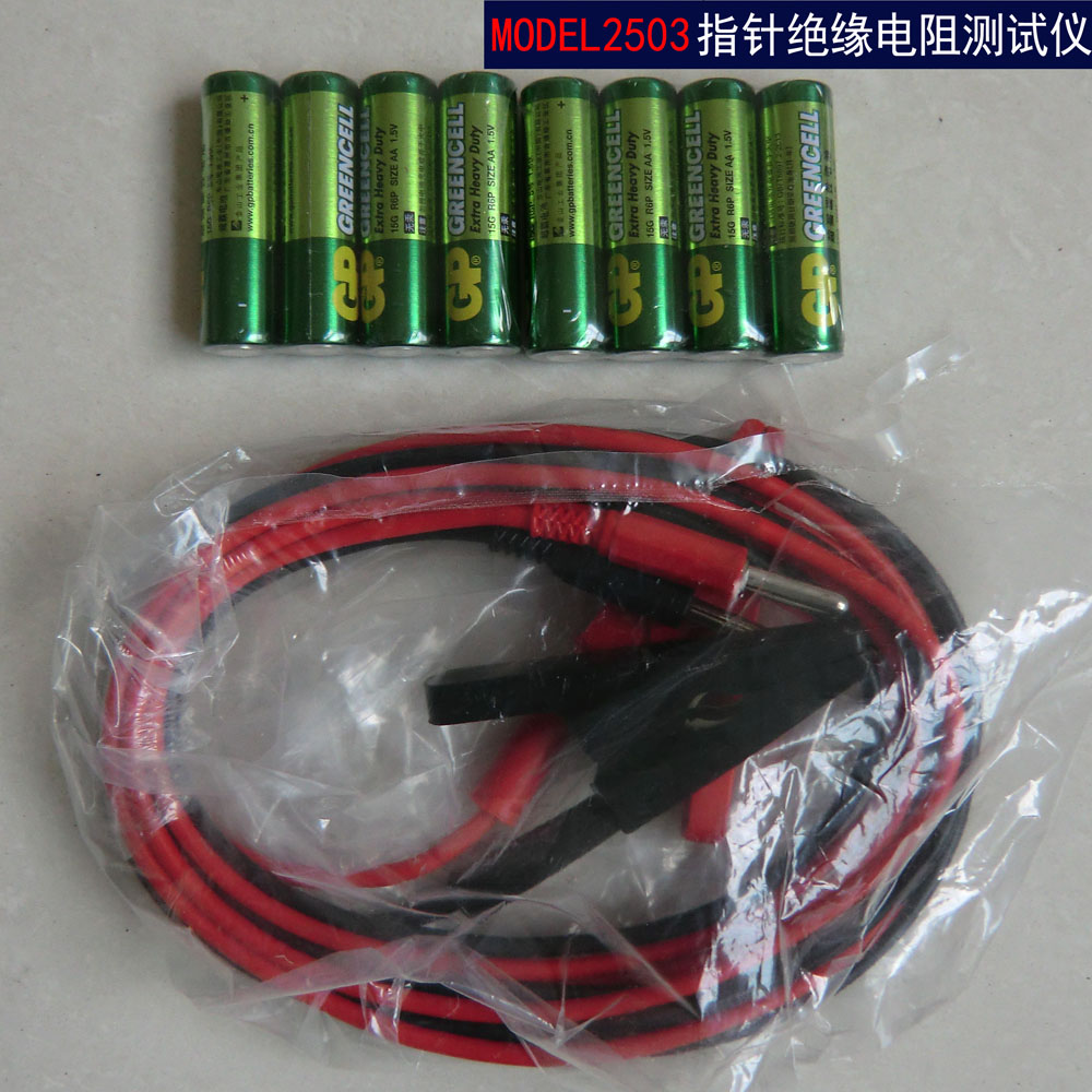 | 附件 :铝合金(5000V/10000V)或工程塑料(5000V以下)包装箱,(8节1.5V五号碱性电池,测试导线,产品说明合格证)各一份,测试线2根,高压线棒(连在表上)1付; | ||||||
