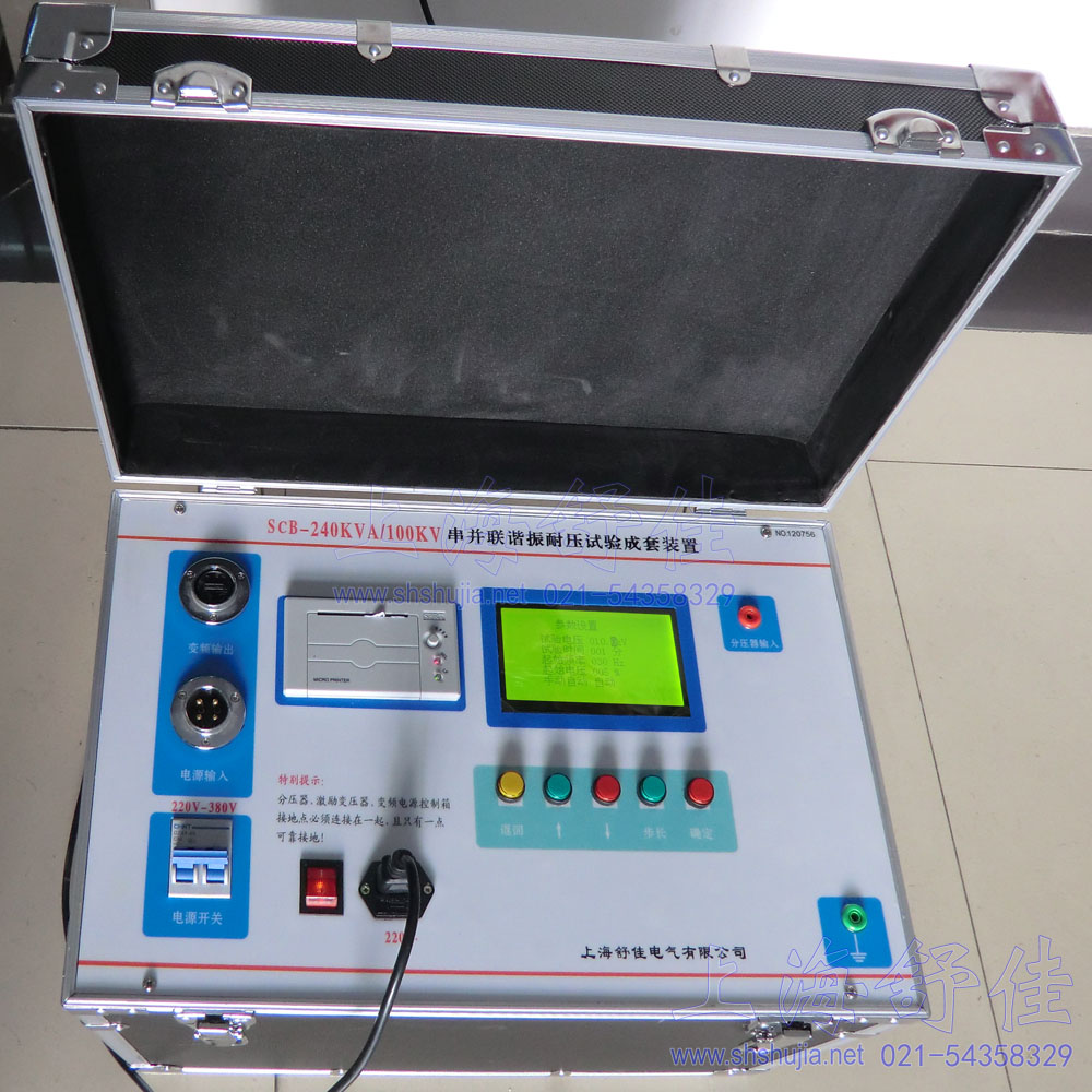 变频输出:电源输出插头,接励磁变压器b、电源输入:电源输入插头,接交流电源,可接 AC380V或者 AC220V c、电源开关d、分压器输入:接电容分压器输入插头e、USB 通信:USB 计算机