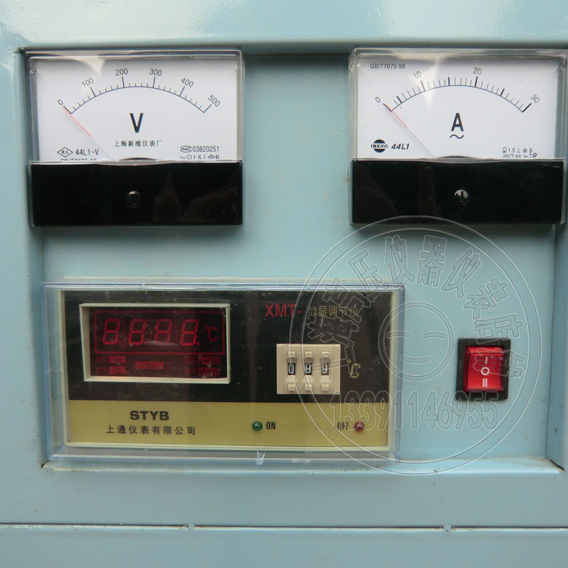4、旋转电源开关,电气加热系统开始升温,此时为绿灯亮;当温度升到所需的温度时,仪表继电器断开,从而使交流接触器切断加热系统的电源,随后定时开关也断开。(定时断开,不定时不断开)此时红灯亮,电铃响,工作人员应及时关上电铃开关。