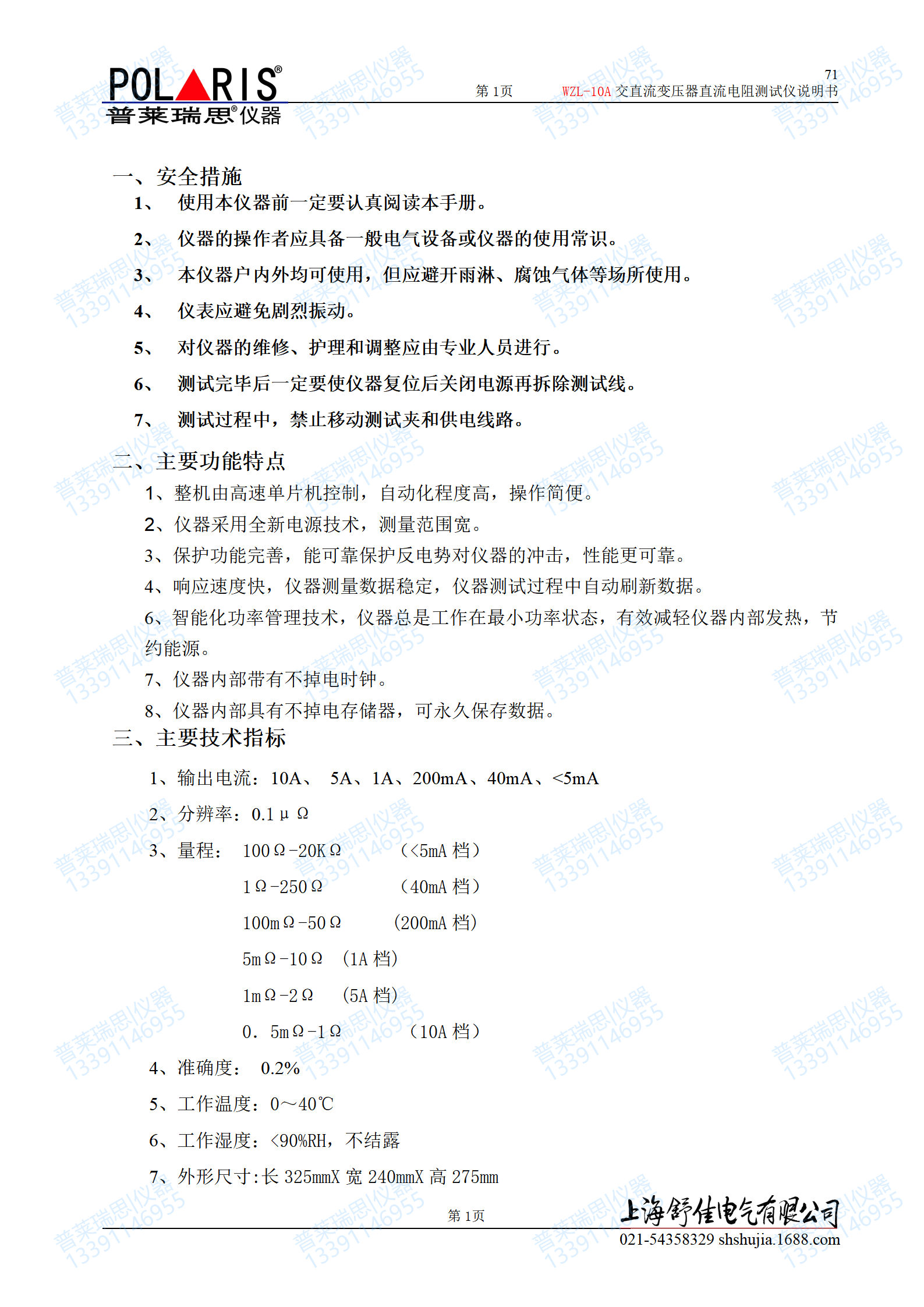 WZL-10A交直流变压器直流电阻测试仪使用明书